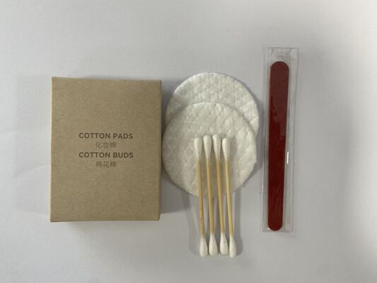 Especificaciones: 3 hisopos de algodón con palito de papel blanco + 2 almohadillas circulares de maquillaje lisas + 1 lima de uñas de 70 mm (en bolsa)
