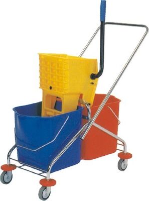 Cubo para fregona de 60L con doble escurridor y rueda universal, mayor capacidad de carga